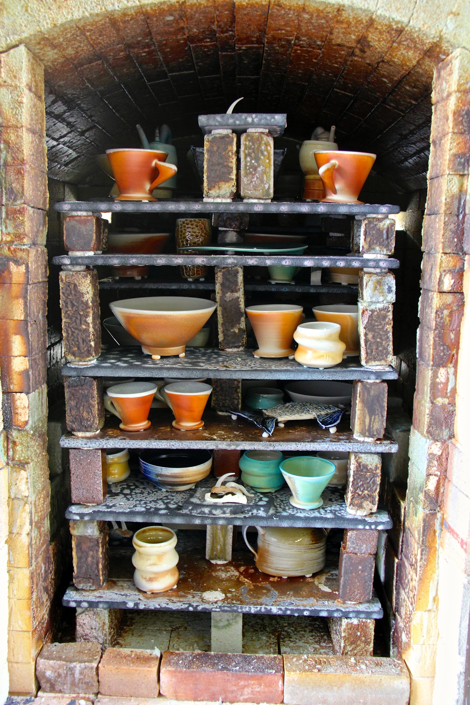 The stoneware is fired in a large gas fired soda kiln to cone 10 about 2350 F at the Colorado Potters Guild a community studio I’ve been a member of since 2011.