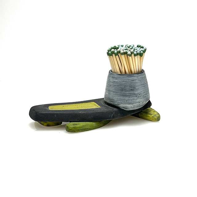 Hand built porcelain match caddies fired in oxidation, featuring a smooth finish and modern design.