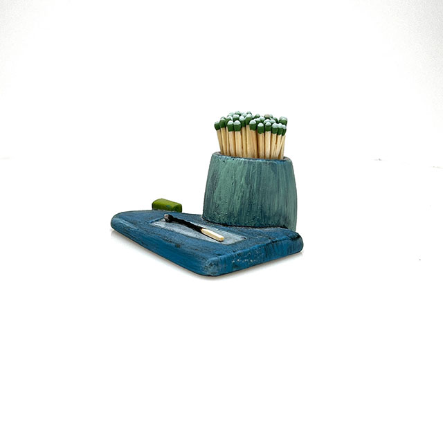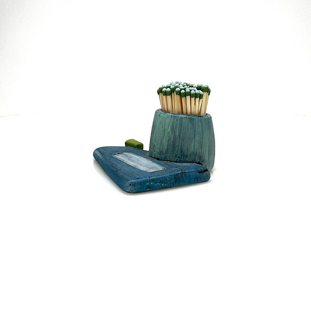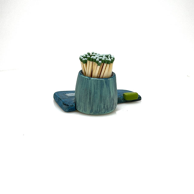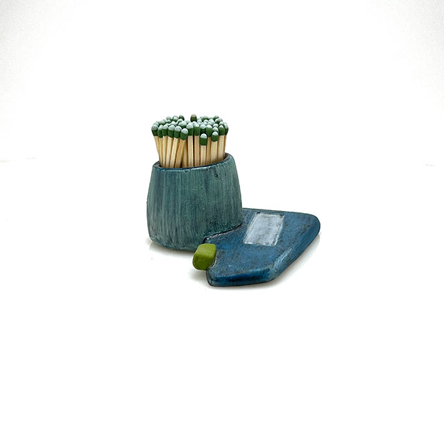 Hand built porcelain match caddies fired in oxidation, featuring a smooth finish and modern design.