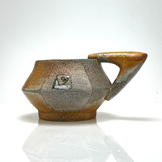 Handcrafted MOD mug in soda-fired stoneware. Each mug carries unique surface textures shaped by flame. Durable, functional, and one of a kind.