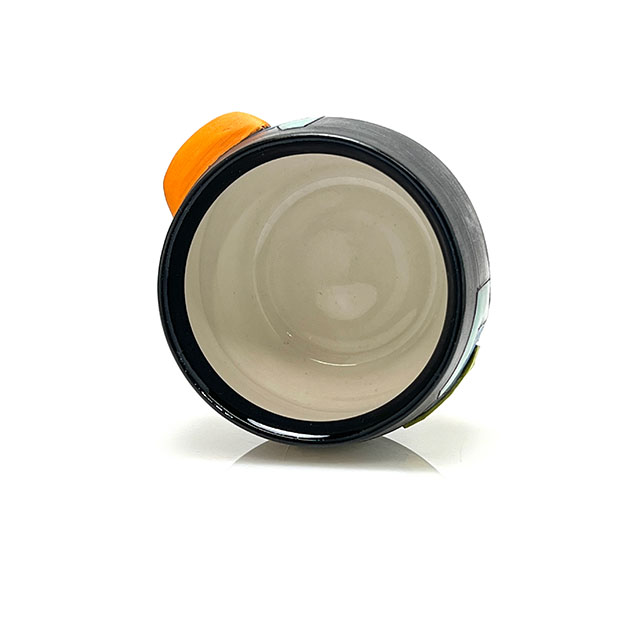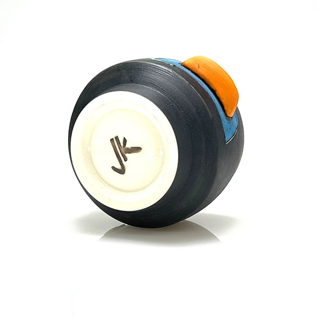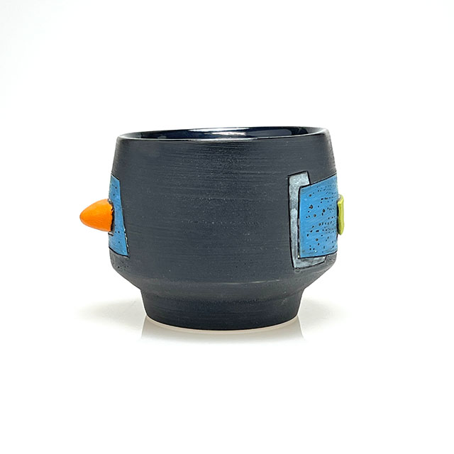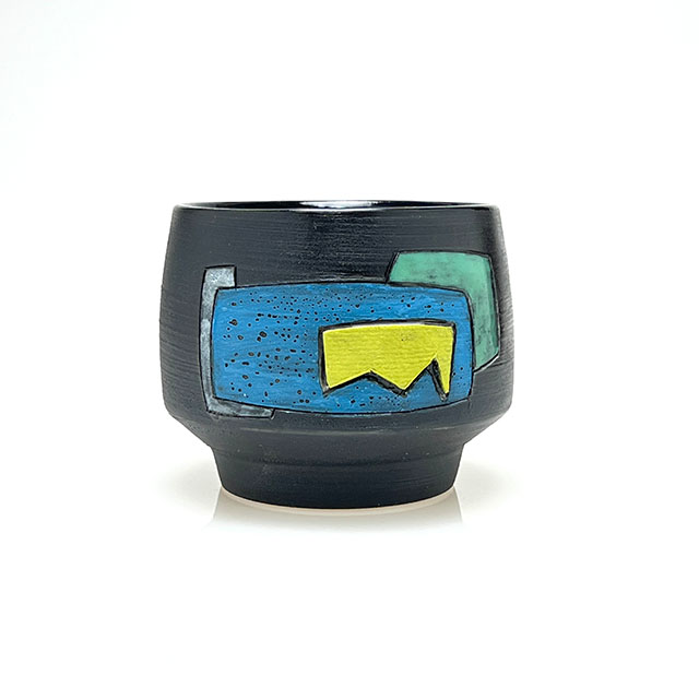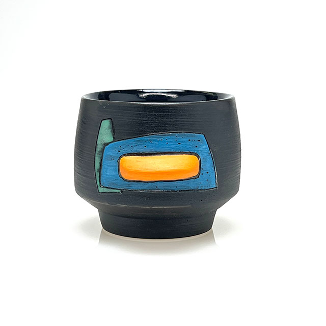 Wheel-thrown porcelain sipper featuring layered colored slips and a hand-shaped colored clay finger nub for added comfort. Each piece is finished with unique, one-of-a-kind color designs.